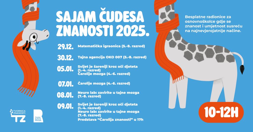 Za kraj školskih praznika pozivamo sve na besplatnu predstavu koja zaokružuje naš Sajam čudesa znanosti – „Čarolija znanosti“ u izvedbi Boss Teatra za djecu.